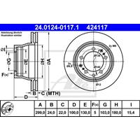 Toepassing: remschijf Montage: Achter Garantie: 2 jaar Buitendiameter [mm]: 299.0 Remschijfdikte [mm]: 24.0 Minimale dikte [mm]: 22.0 Remschijftype: Geventileerd Verwerking: Gelegeerd/Gecarboniseerd Oppervlakte: Gecoat Aantal gaten: 5 Steek wielbouten (mm): 130.0 Hoogte [mm]: 100.0 Diameter: 103.0 Binnendiameter [mm]: 180.0 Naaf boring-Ø [mm]: 15.4 Controleteken: E1 90R-02C0296/1061 o.a. geschikt voor PORSCHE 911 Cabriolet (964).