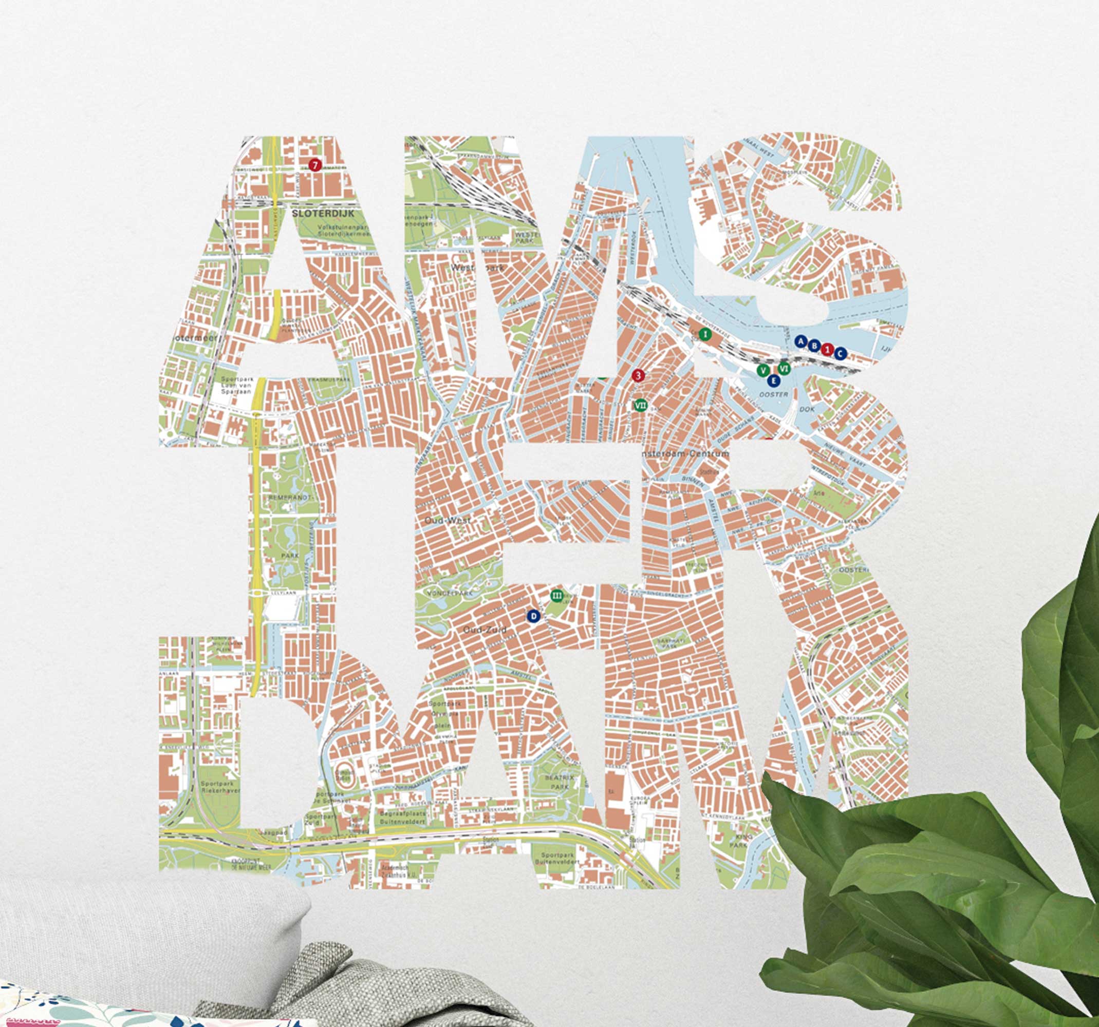 Tenstickers Muurstickers tienerkamer Amsterdam kaart